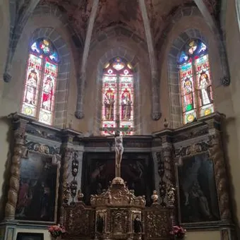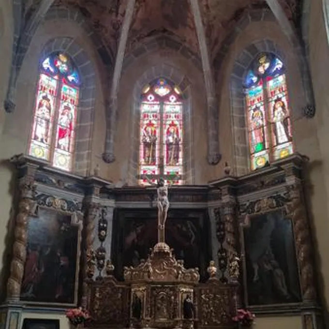 It features a single nave, a canted chevet and two 17th-century side chapels. A spiral staircase leads up to the square bell tower. Over the years, thanks to the various priors who have worked to restore and embellish the church, it has become home to furniture of exceptional quality. These include the 17th-century tribune, 17th- and 18th-century wooden stalls, various priestly objects, several paintings, modern stained glass windows partially restored in the 19th century, and the 18th-century gilded wood and marble high altar and tabernacle.