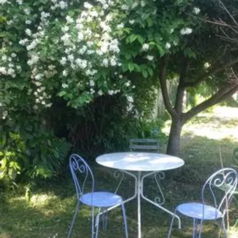 Peaceful village house at the foot of the Ariège mountains, garden, river at the end.