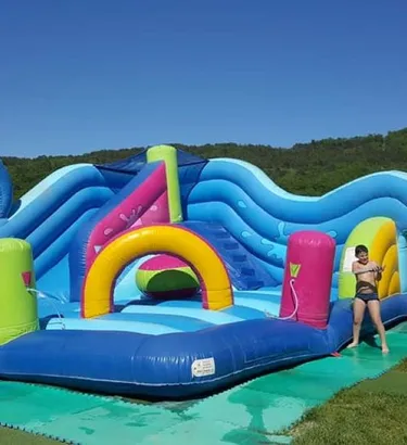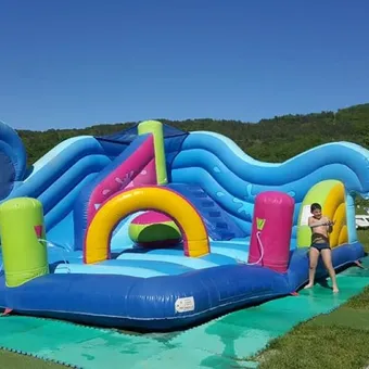 Situated on the shores of Lac de Montbel, about 30 kilometers from Lavelanet, the inflatable playground unfurls its 2,000 m² of installations where your children
